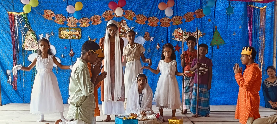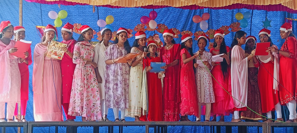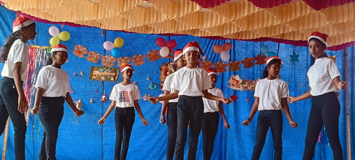 On 17th of December ,our school celebrated both christmas and new year.The celebration had been taken place in the school premises. The school wore a festive look with bells and a beautifully decorated Christmas tree.There were Christmas Carol songs,dance and a skit about 'The birth of jesus'.At the end of the program Santa claus arrived and filled the entire crowd with joy and danced with everyone with great enthusiasm.All the chidren enjoyed to the beats of "Jingle bells".