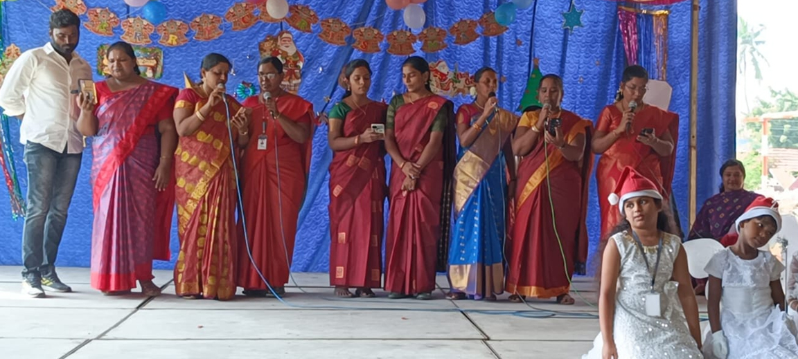 On 23rd of December ,our school celebrated both christmas and new year.The celebration had been taken place in the school premises at 9.00 a.m.Our Advisor Mrs.B.sudha B.sc.,M.A.,M.Ed presided over the function.There were Christmas Carol songs,wishes,dance and a short skit about 'The birth of jesus'.Then our teacher Mrs R.Pamila vinodhini delivered a message.At the end of the program Santa claus arrived and filled the entire crowd with joy and danced with everyone with great enthusiasm.All the chidren enjoyed to the beats of "Jingle bells".